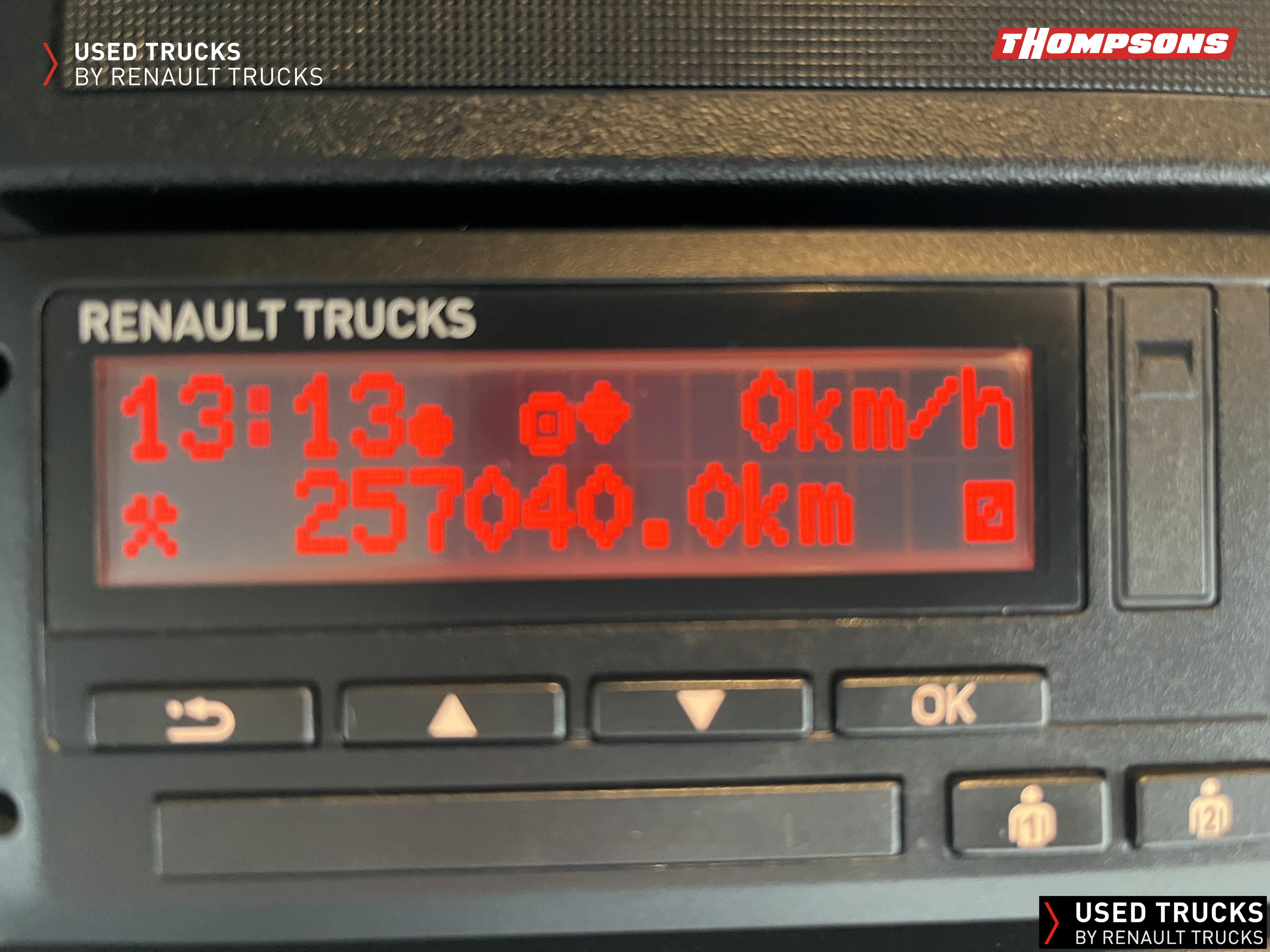 Renault Range D14, day cab, air conditioning, electric windows/mirrors, cruise control, exhaust brake, Radio/Cd player, lane departure warning, automatic emergency braking system, hill assist, barn doors, load restraint system, rear air suspension, Optidriver gearbox, Euro 6/ULEZ/CAZ compliant, only 257,000km, very nice condition.