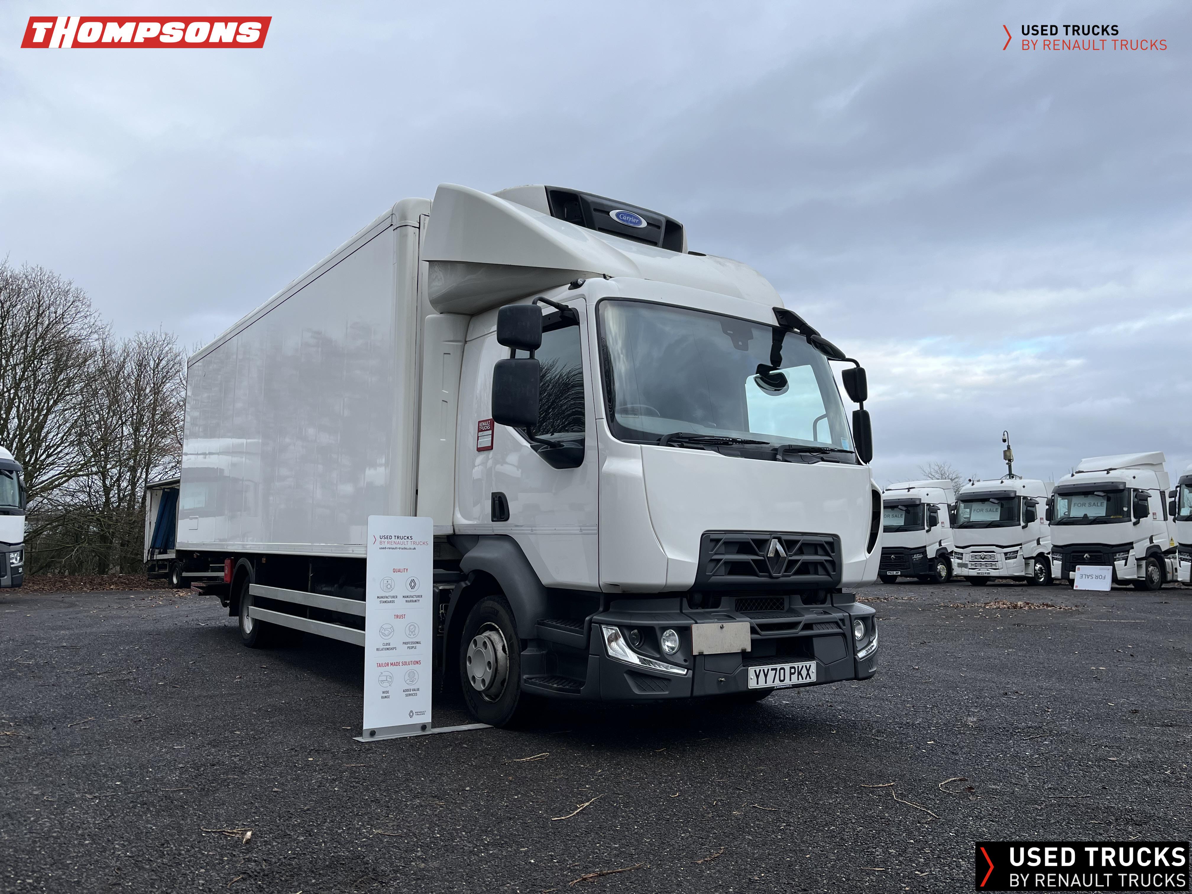 Renault Trucks D240 12 t. Single Bunk Rest Cab, Automatic Gearbox, Fitted with Grey & Adams Refrigerated Body. Carrier Supra Chiller Unit, Side Door, Rear Barn Doors, Internal Moveable Divide. Dhollandia Tuck Away Tail Lift. Clean Truck Supplied with 6 Months Driveline Warranty and a new 12 months MOT