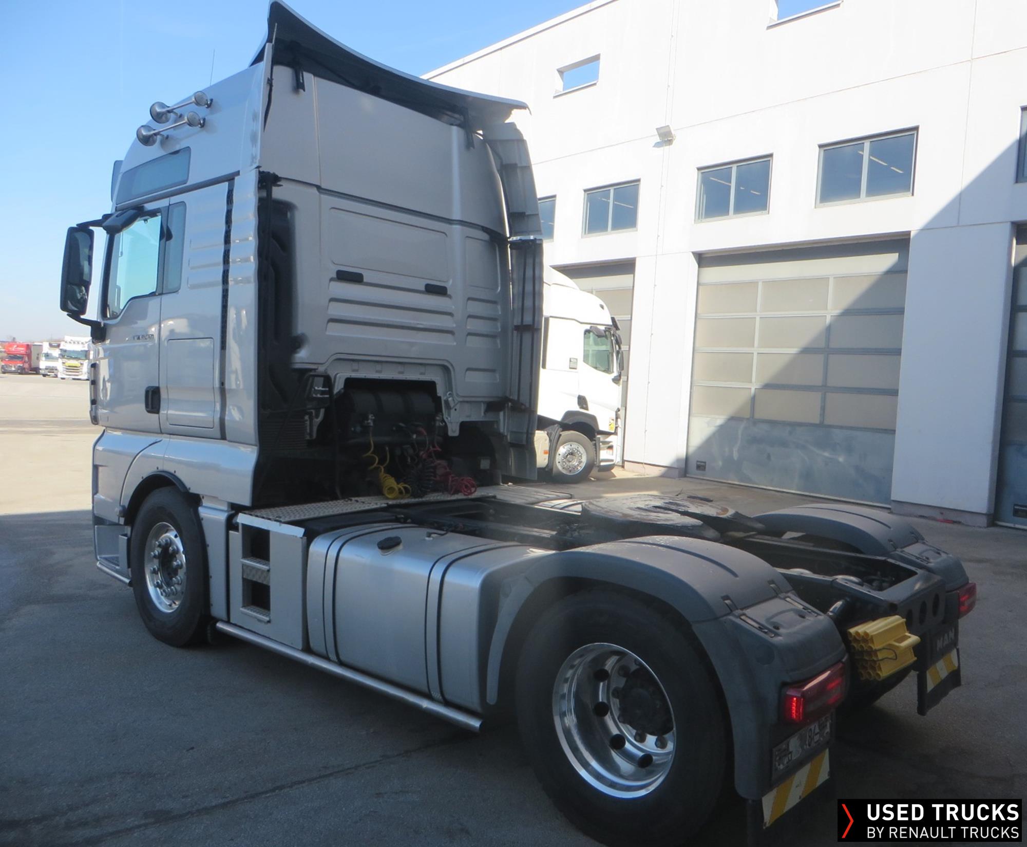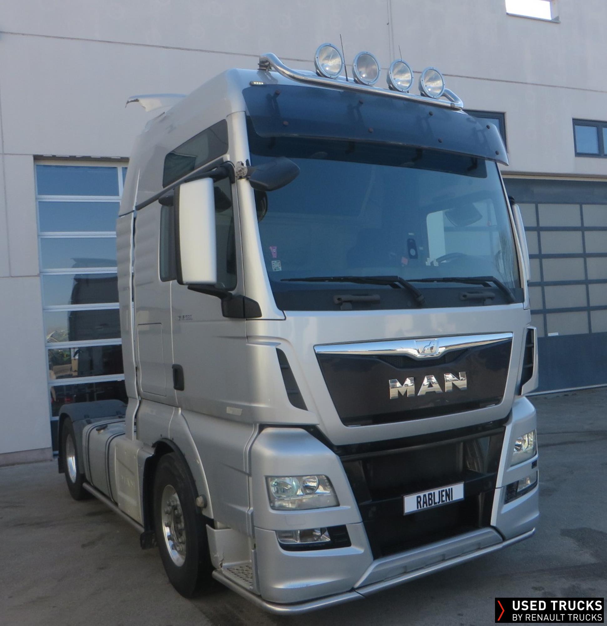MAN TGX 18.560 4x2Tractor, XXL cab, 6/ 2016, 979534km, 16L 560hp euro6b, D38, Retarder, Klima, Parking klima, Fridge, Roof horns, 450+450L fuel tanks, Roof rollbar with 4 HELLAs, ALU rims, 385/65R22.5 - 315/70R22.5, Silver metallic