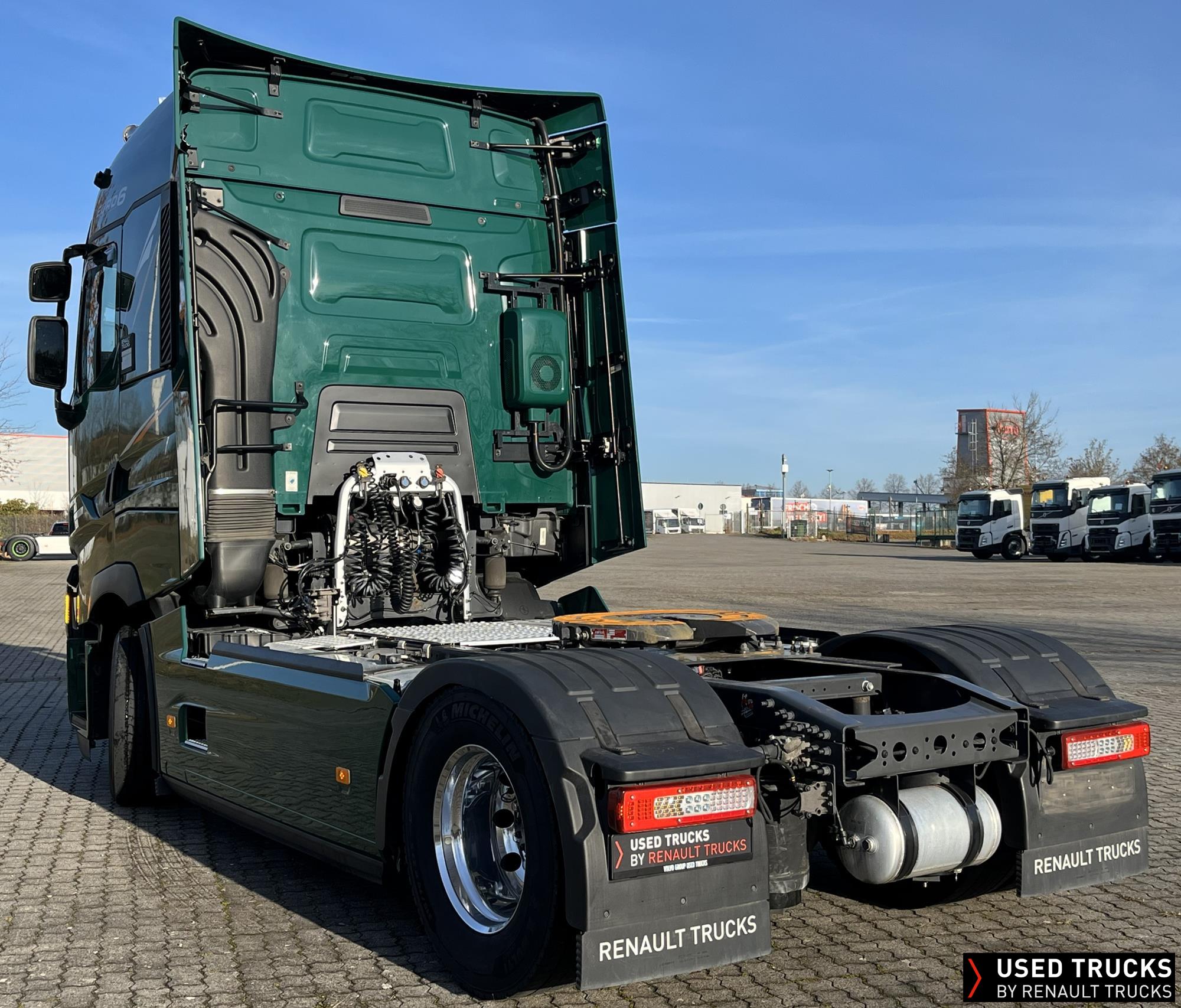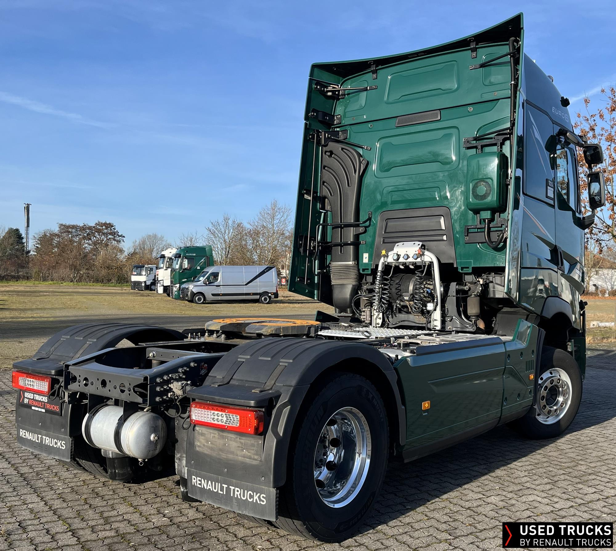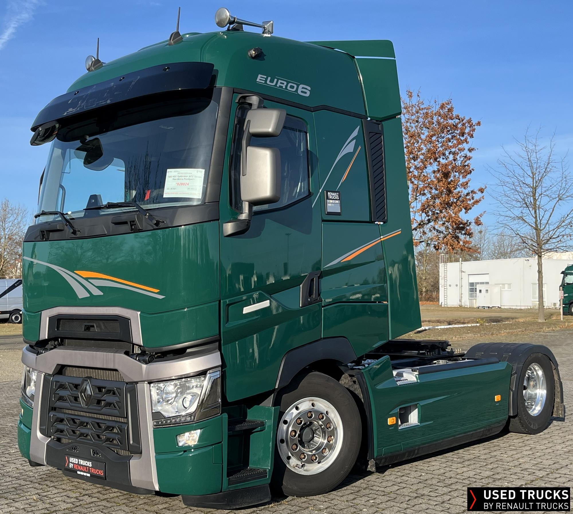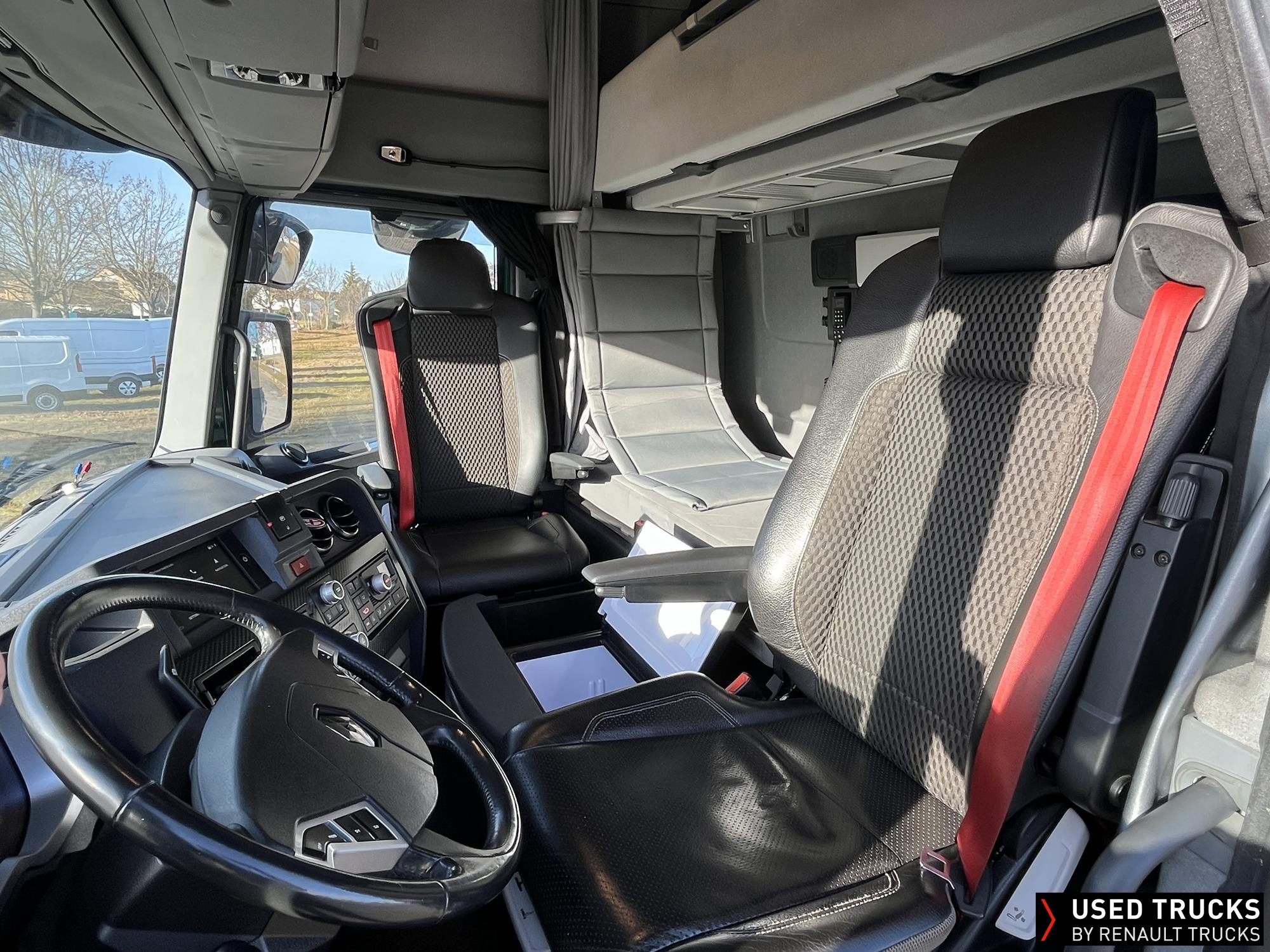 **Verkauf ausschließlich an Transportunternehmen innerhalb der EU / Sales exclusively to transport companies within the EU!**, **beheizbarer Dieselfilter**, **Kaltstarthilfe**, Höhe Sattelkupplung 150 mm - Montage tief, **Roadpad+**, Vorhang **Luxe** & Liege, **Kamera seitlich & Kamera Sattelkupplung hinten**, Vorrüstung Scheinwerferträger am Dach, **Integrallackierung Zugmaschine**
